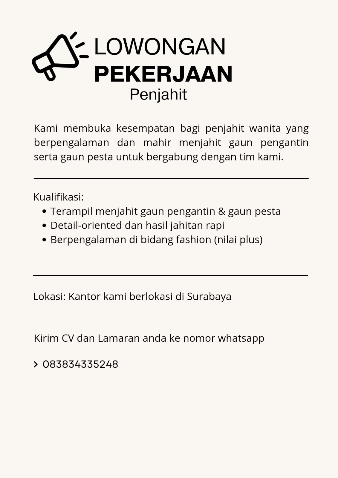 Untuk informasi lebih lanjut, jangan ragu menghubungi kontak yang tersedia. Kami siap memberikan penjelasan dan menjawab pertanyaan Anda seputar lowongan kerja ini.