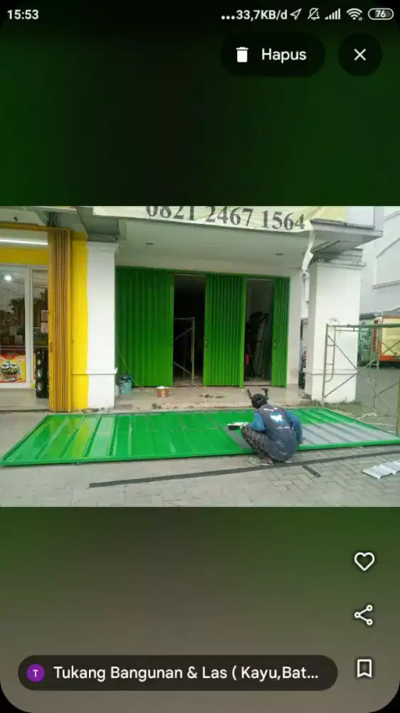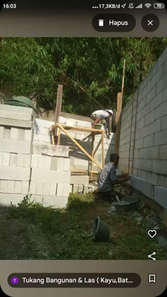 Jasa konstruksi dan bangunan. Mengerjakan bikin baru atau renovasi rumah,Ruko,Kontrakan,Gedung,kost kostan. Pemasangan granit, keramik, Marmer, hebel, plester dan acian, Bikin baru dan renovasi instalasi listrik dan air, Pengecoran, pengaspalan, Pembuatan spiteng baru dan renovasi. Wc mampet, Pemasangan Plapon Gipsum atau pvc, pembuatan pintu pagar, canopi, ralling tangga,balkon,void,tralis dll. Harga bisa nego dan di musyawarahkan. Bukan PT atau Cv. Saya sendiri yg mengerjakan. Jika pekerjaan banyak saya bisa bawa team buat bekerja. Bisa borongan atau harian.Tukang las keliling/panggilan. Terima jasa pembuatan bikin baru atau renovasi pintu pagar,tralis,balkon,canopy,ralling tangga,kandang binatang,lemari besi dll .bisa request pembuatan atau pengerjaan apa aja. Konsultasi dan survey gratis.saya sendiri yg mengerjakan. Terima kasih. Insya Allah berkah dan Amanah. Aamin. Untuk upah tenaga bangunan tukang 180rb/hari dan kenek 150rb/hari.. Untuk pengerjaan borongan tenaga atau plus bahan, Garansi 1 th perawatan.. Insya Allah Amanah dan bertanggung jawab. Terima kasih