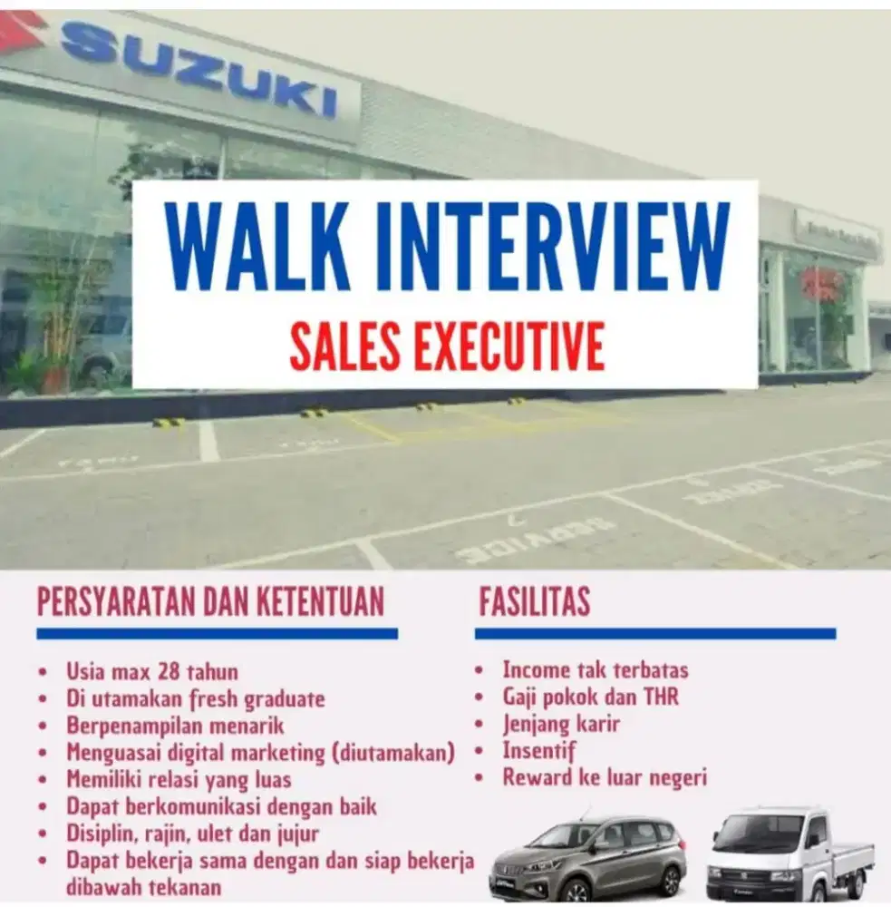 PELUANG KARIR INI SOLUSI NYA: PELUANG EMAS SEGERA DAN TERBATAS KESEMPATAN BERKARIR DI SUZUKI R4 INDOMOBIL GROUP PURI INDAH DIBUTUHKAN SEGERA : MARKETING MOBIL SYARAT : 1.USIA MAKS 24 - 35 TAHUN 2.LAKI LAKI ATAU PEREMPUAN 3.MIN SMA/D3/SARJANA 4.DISIPLIN,PEKERJA KERAS 5.ORIENTASI TARGET 6.PUNYA KEINGINAN UNTUK MAJU 7.KOMUNIKATIF 8.PENGALAMAN /NON PENGALAMAN 9.MEMILIKI KENDARAAN RODA DUA 10. AKTIF SOSIAL MEDIA FASILITAS : GAJI POKOK UANG MAKAN UANG TRANSPORT INSENTIF BONUS2 MENARIK TUNJANGAN KESEHATAN TRAVELLING KE LUAR NEGRI JENJANG KARIR YANG JELAS FREE TRAINING HUBUNGI : IBU EKA IBU EKA