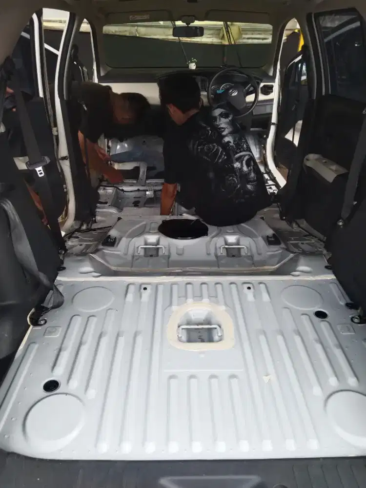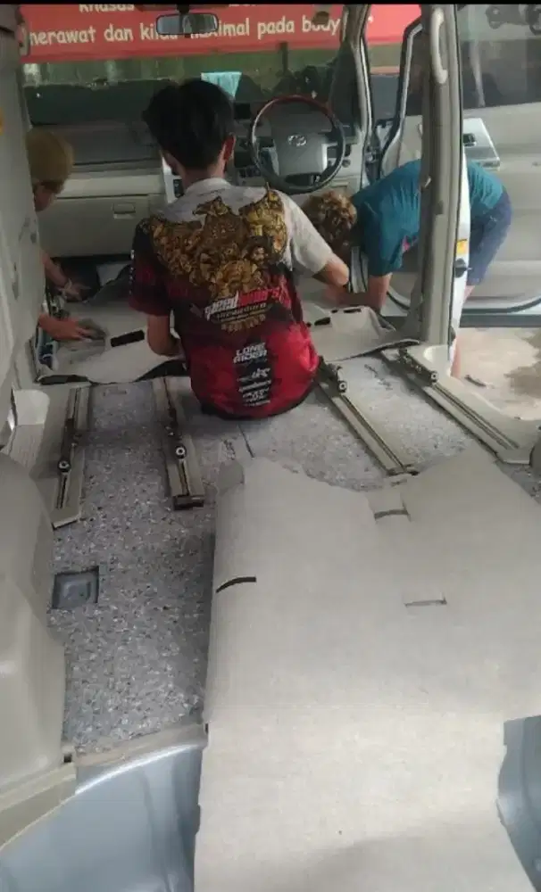 Perawatan interior bekas kebanjiran cuci dan keringkan jok dan karpet dasar mobil ganti peredam panas dan suara, hilangkan bau apek, kecoa dan semut