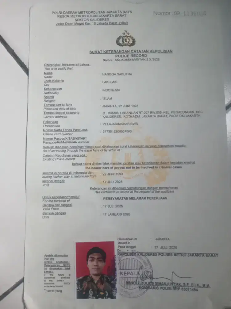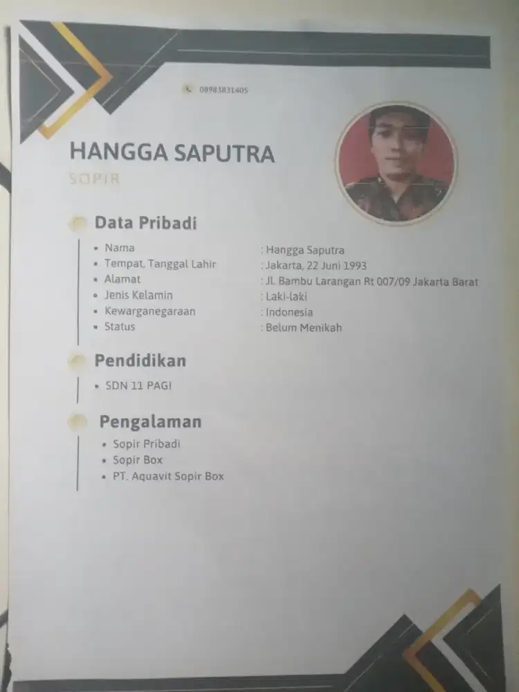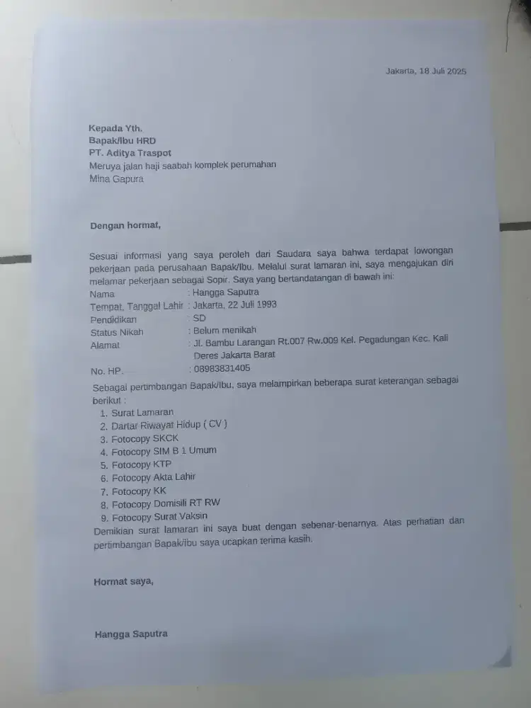 Saudara/i kita yang bernama "Hangga saputra" yang beralamat di "Kalideres Jakarta Barat" sedang membutuhkan pekerjaan.