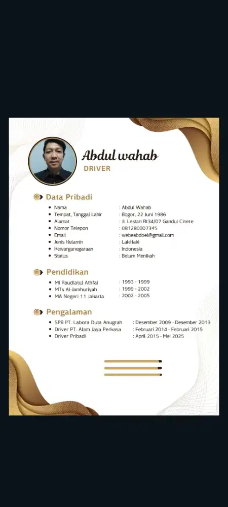 Saudara/i kita yang bernama "Abdul wahab" yang beralamat di "Cinere Depok Kota" sedang membutuhkan pekerjaan.