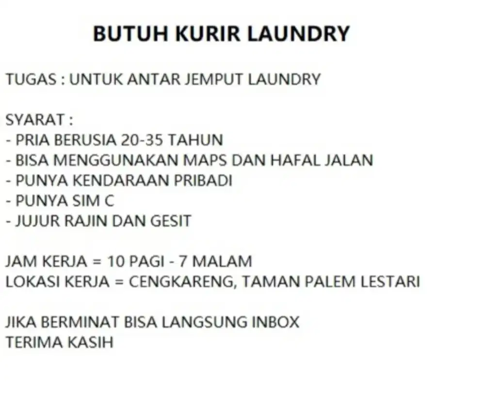 Buka Loker Butuh Kurir Laundry – Bonus Performa