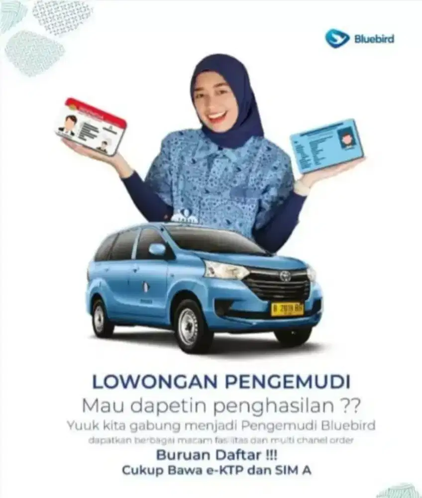 Suka mengemudi? Dan senang bertemu penumpang? Yuk menjadi pengemudi taksi saja, penghasilan oke lho! Sumber order banyak Persyaratan Sim A Ktp Usia minimal 23 tahun Hp android mininal ram 4