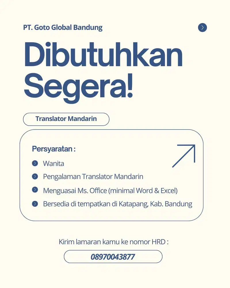 Segera kirimkan lamaran Anda ke alamat email atau kontak yang tertera. Jangan lewatkan kesempatan emas untuk bergabung dengan perusahaan yang terus berkembang ini.