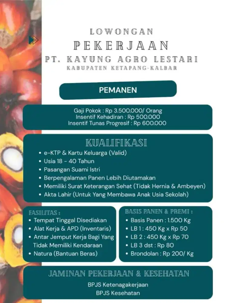 Rekrutmen Terbuka Loker perkebunan – Fresh Graduate Dipertimbangkan