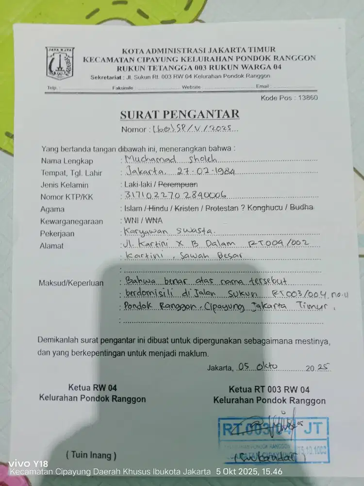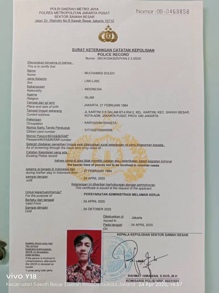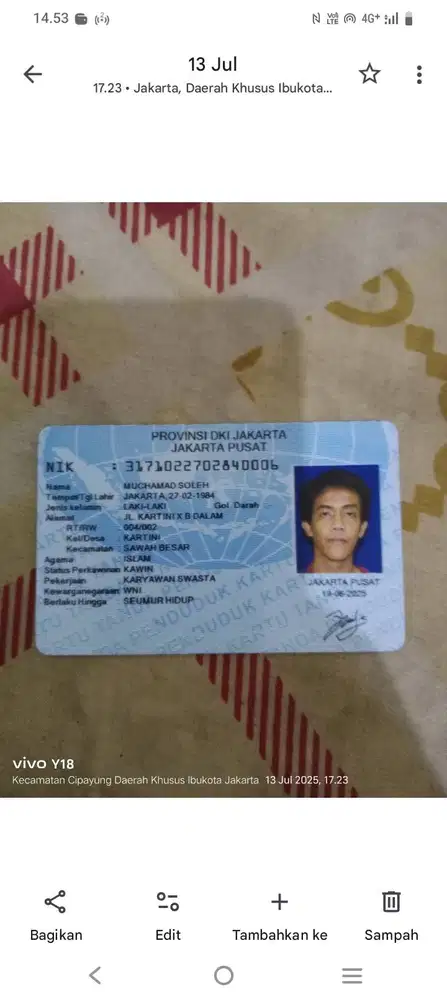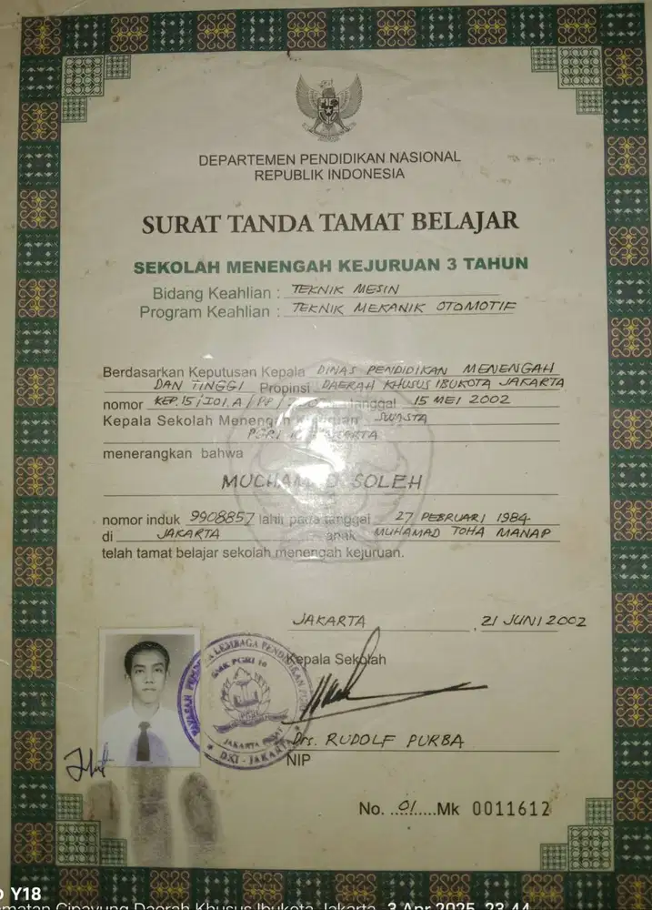 Saudara/i kita yang bernama "Muchamad Soleh" yang beralamat di "Cibubur Jakarta Timur" sedang membutuhkan pekerjaan.