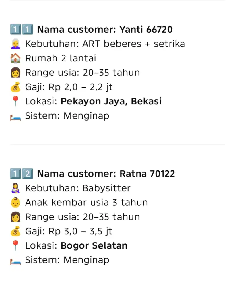 Langsung majikan Interview dirumah masing Proses online Tidak perlu datang ke kantor Sudah resmi kemenaker kemenkumham Instagram centang biru WA centang hijau Tiktok Facebook Website rating bintang 5 boleh di cek No kontrak No ribet No embel2 yayasan Syarat KTP asli Tidak ada penahanan berkas Tidak ada potongan gaji Berangkat diongkosin Dapat makan 3x bergizi Kamar pribadi dan alat mandi Gaji 2,5jt- 4,5jt Cussss hubungi wawa yaa Amanah resmi gercep Rating di google boleh di adu