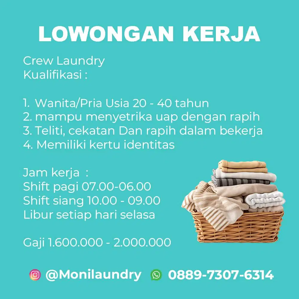 Dicari Segera Lowongan kerja laundry Jakarta timur – Minimal Lulusan SMA/SMK