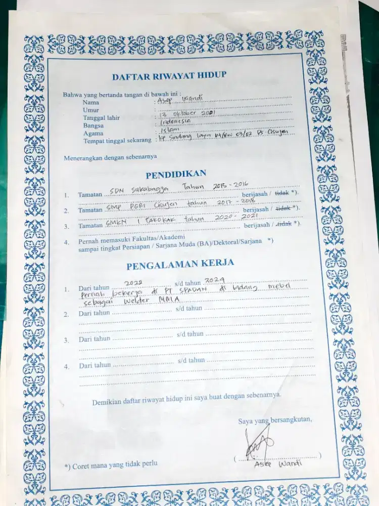Saudara/i kita yang bernama "Asep Wandi" yang beralamat di "Kosambi Tangerang Kab." sedang membutuhkan pekerjaan.