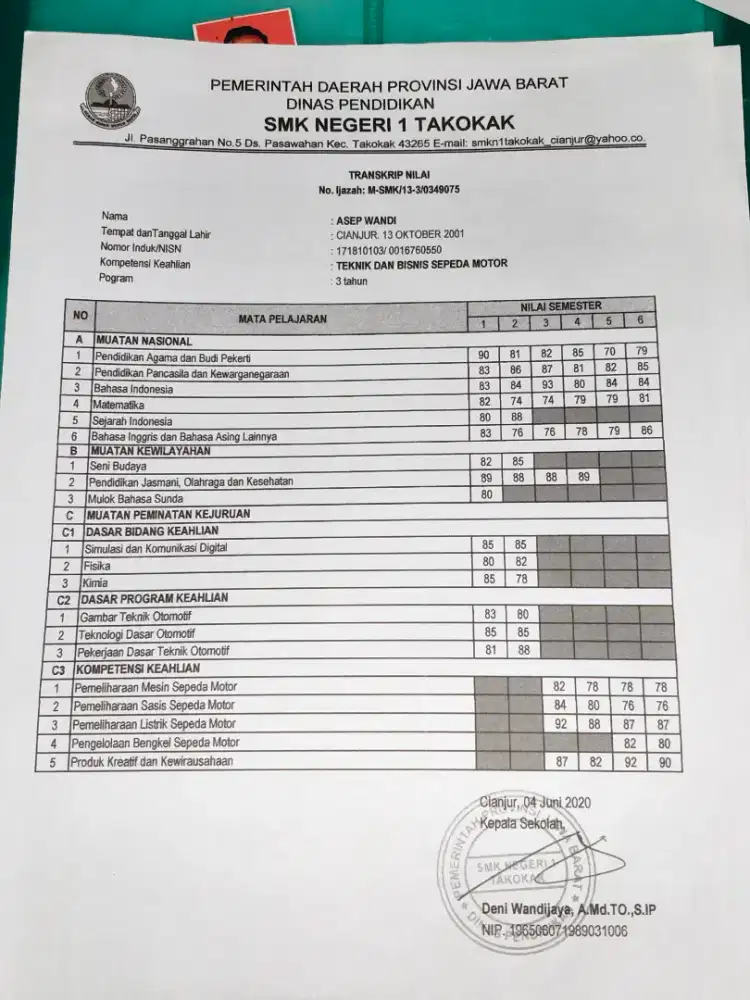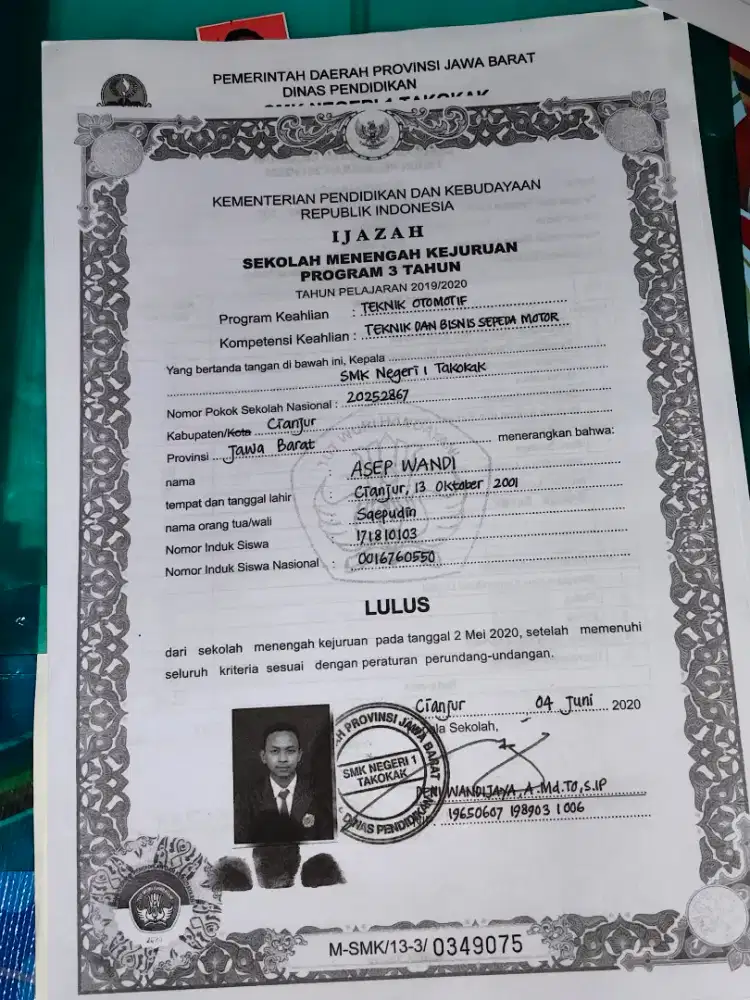 Lulusan SMK N 1 TAKOKAK JURUSAN (TEKNIK BISINIS SEPEDA MOTOR)