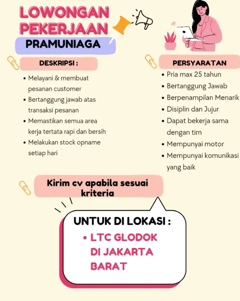 Jika Anda tertarik dan memenuhi kualifikasi, silakan kirimkan surat lamaran lengkap beserta CV dan dokumen pendukung lainnya. Kami tunggu aplikasi Anda dan siap menyambut Anda dalam tim kami.