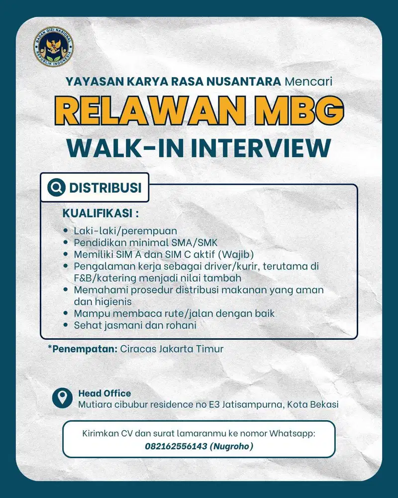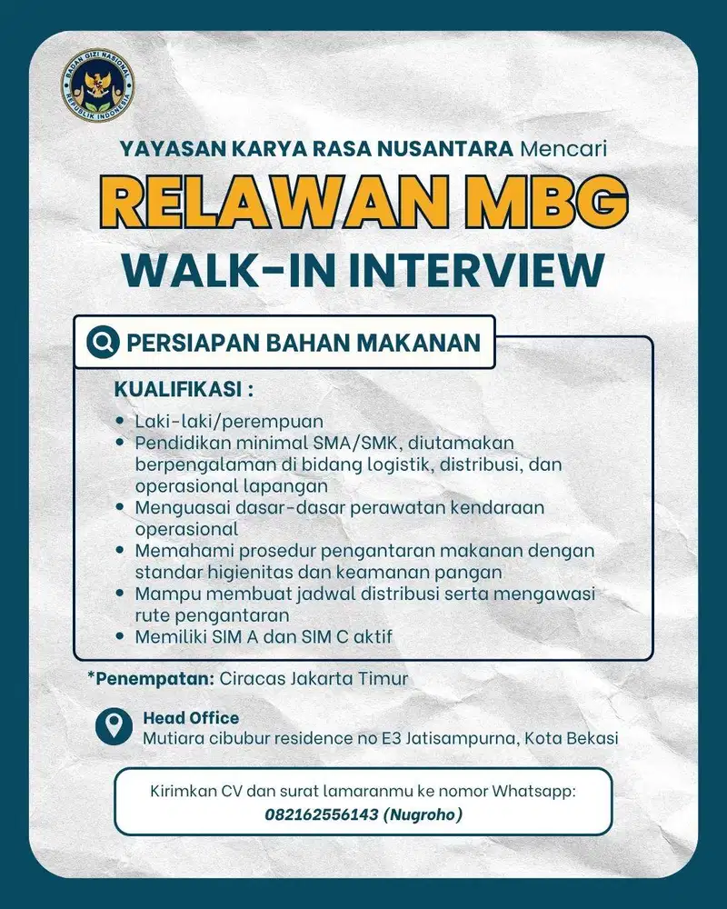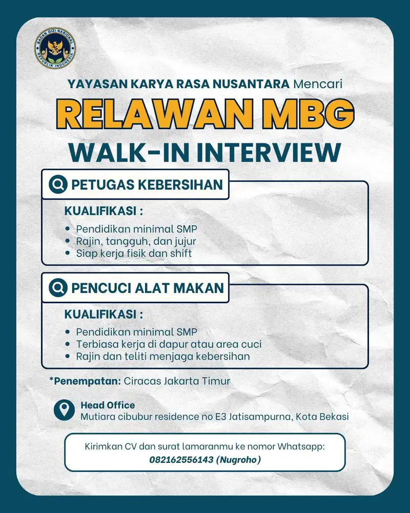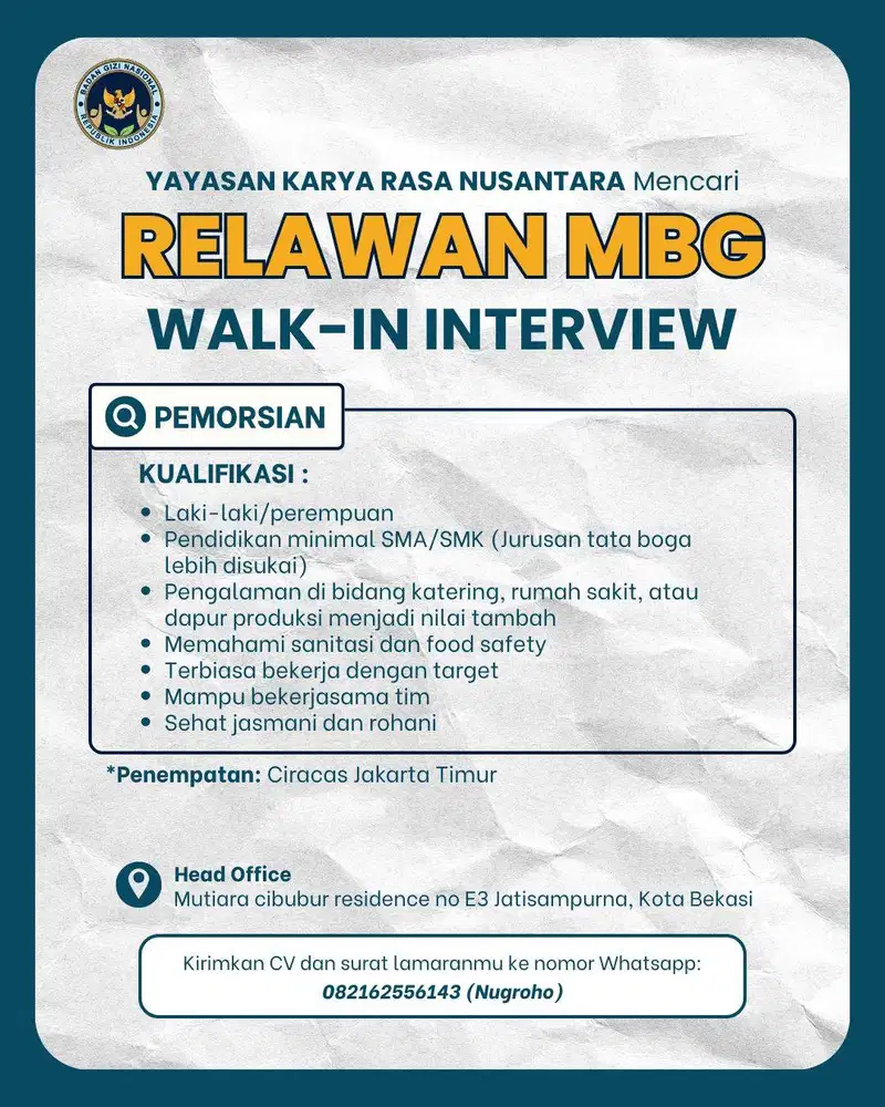 Info Loker Lowongan Relawan MBG – Hubungi Sekarang