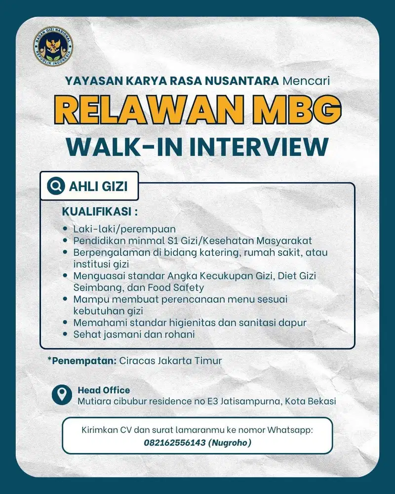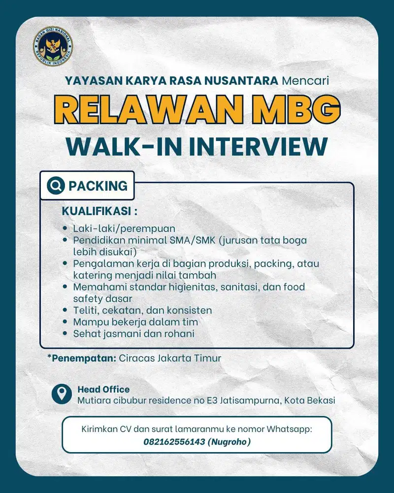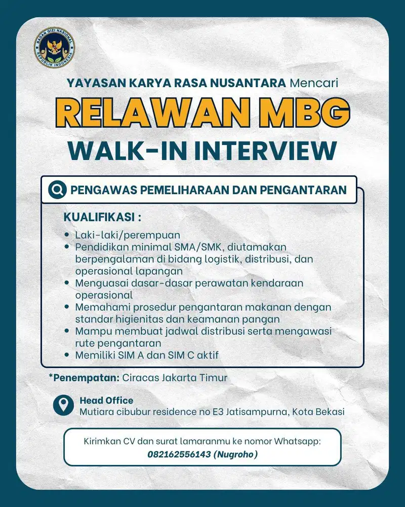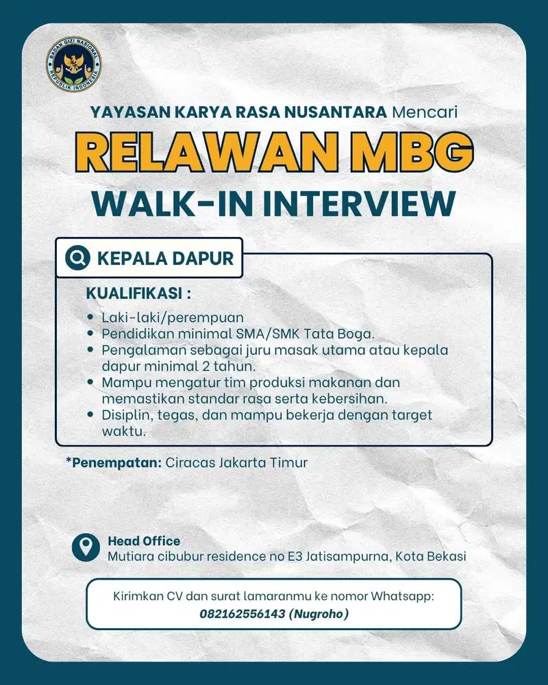 Info Loker Lowongan Relawan MBG – Hubungi Sekarang