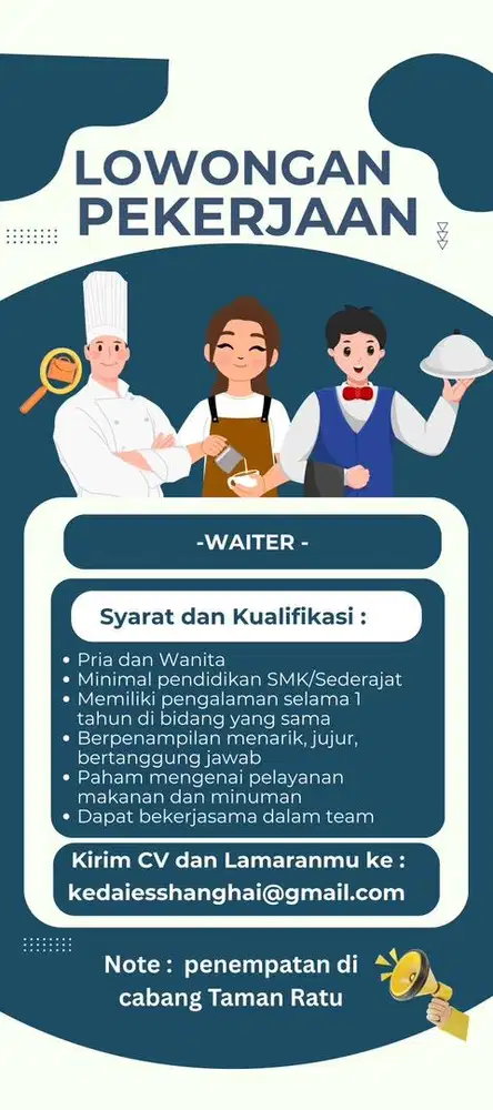Kesempatan Karir Dibutuhkan Waiter – Fresh Graduate Dipertimbangkan