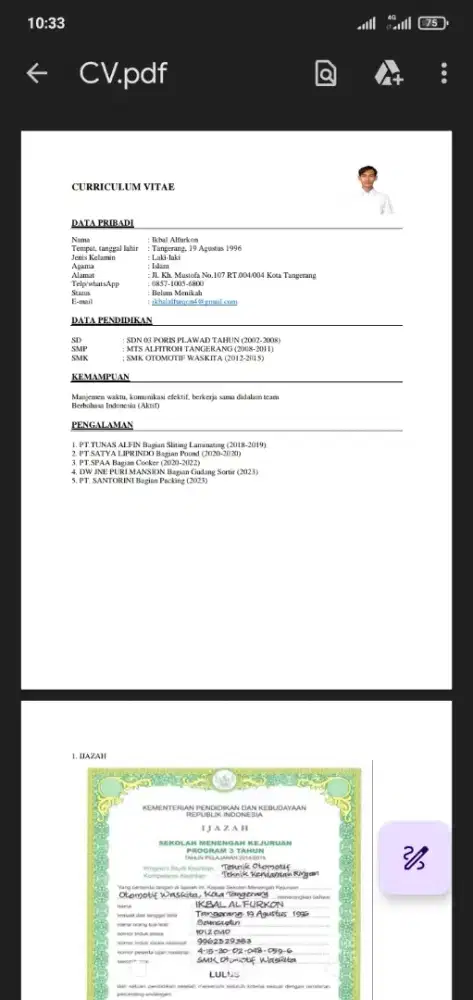 • Jangan mencantumkan data sensitif seperti KTP, rekening bank, atau alamat lengkap di CV publik