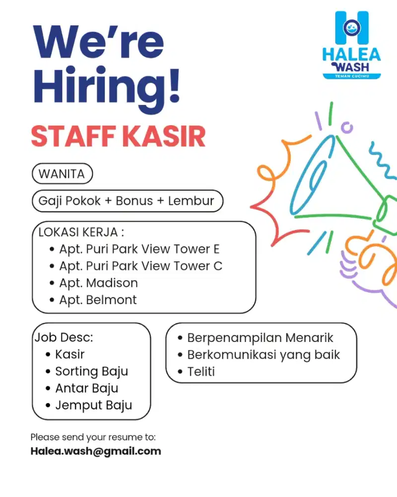 Segera kirimkan lamaran Anda ke alamat email atau kontak yang tertera. Jangan lewatkan kesempatan emas untuk bergabung dengan perusahaan yang terus berkembang ini.